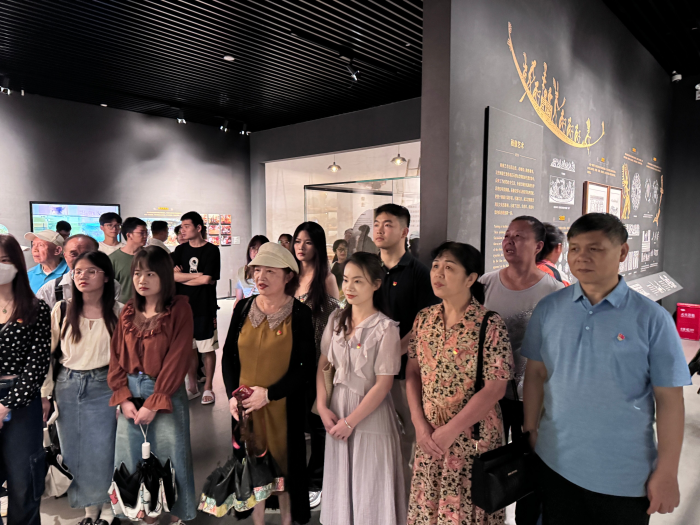 广西民族博物馆作为全国民族团结进步教育基地,馆藏丰富,展品涵盖了广西各民族的历史、文化、艺术等多个方面。全体党员在讲解员的引导下,依次参观了壮族、侗族、瑶族等民族的文化展区。