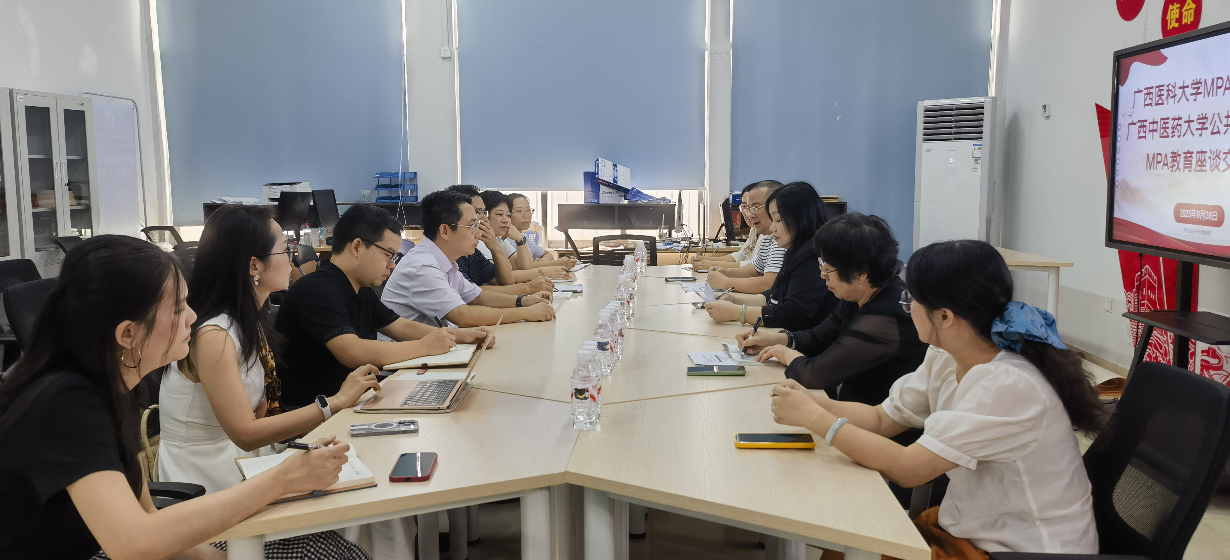 为交流MPA申报及办学经验,9月28日上午,广西中医药大学公共卫生与管理学院李海院长率队到信息与管理学院开展交流座谈。学院院长何慧敏、副院长张新花以及MPA中心工作人员和教师代表参会。